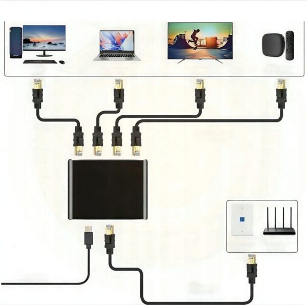 Mini switch/splitter RJ45 1→4 (Gigabit)